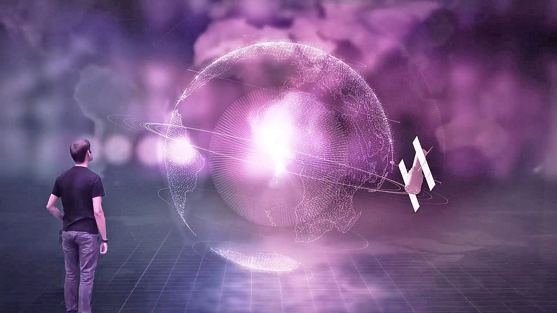 The physical globe once often present in traditional offices served as inspiration for this digital depiction of an advanced map room appearing as it might in the age of VR. This modern twist was applied to a video title created for an In-house informational series.