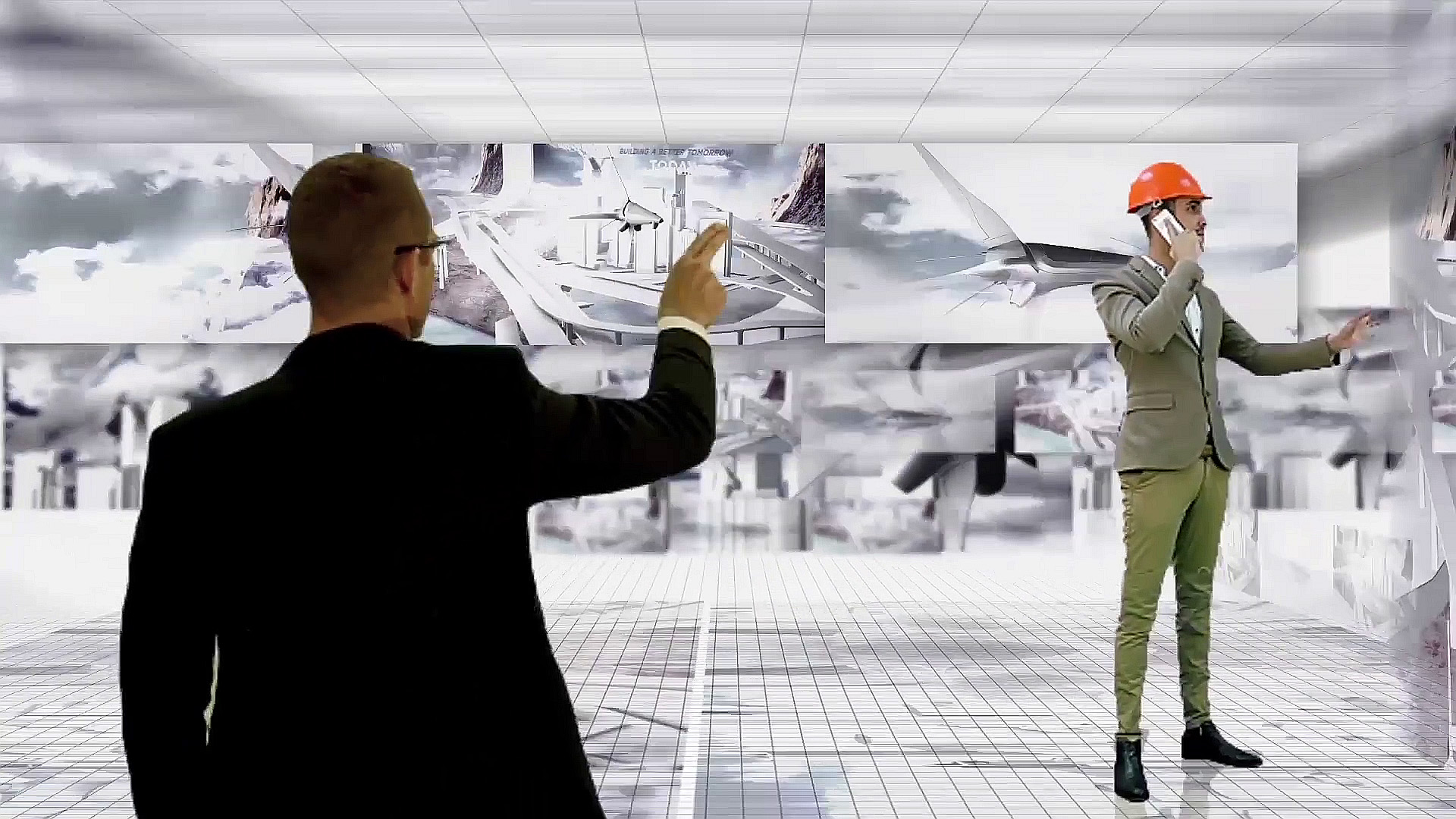 Designed as an innovative visual representation, it’s intended to demonstrate new approaches in collaborative virtual reality and online 360 work environments. The promo was complimented by additional video clips including those showing individuals viewing and swiping virtual design screens in VR space.