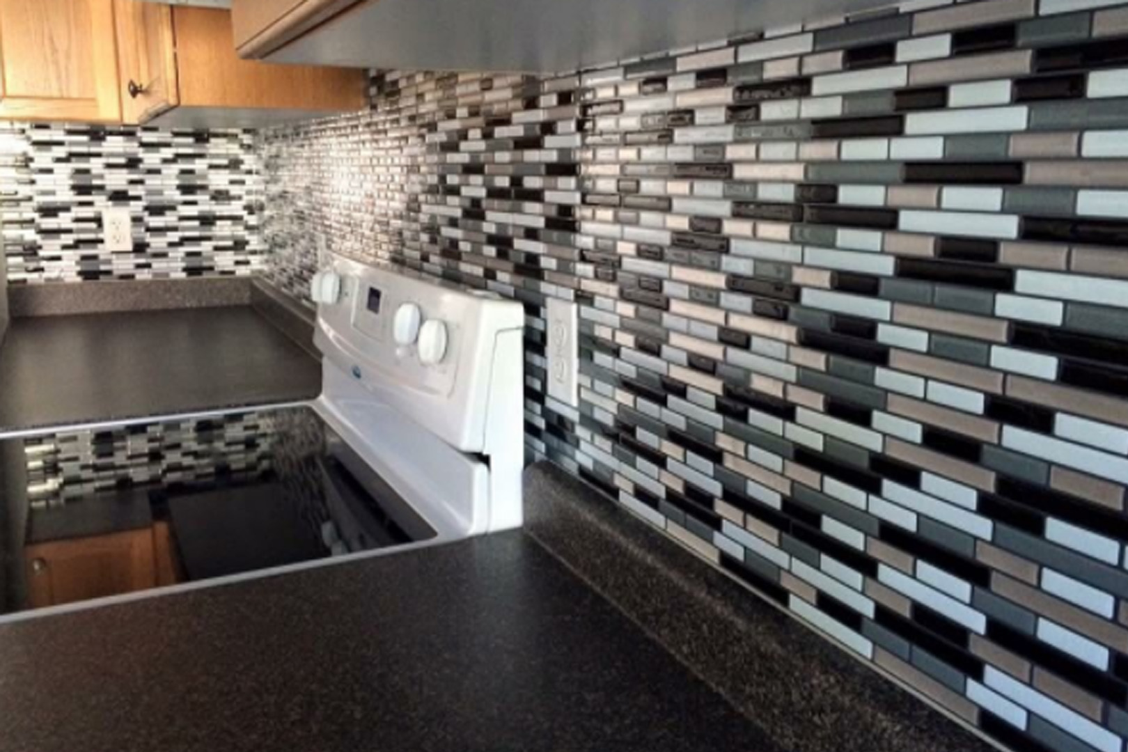 Ms. Rego was looking for a modern minimalist look in the design of her kitchen. We employed an urban style with a high contrast backsplash, exotic woods and sleek slab floors. We also paired a classic style with modern elements giving this small kitchen a fresh and updated feel.